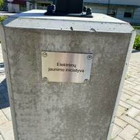 There is a tradition to organize an annual "Day of Action" for the youth in Elektrėnai municipality. This day participants compete with each other to propose the best idea that would enliven the lives of young people in this municipality. The winners have financial and other assistance from the Elektrėnai municipality administration. In 2019 the team from Elektrėnai "Versmės" gymnasium received the most votes. Their idea ,,Where did I see this?" aims to create a work of art dedicated to preserve the symbols of their town which are no longer in Elektrėnai. This sculpture covers the chimneys of the power plant, the ,,Devil's Wheel" (Ferris wheel) of the former amusement park and the diving platform. The sculpture also commemorates the names of the flooded villages and the anniversary year 2020, which is the 60th birthday of Elektrėnai town. The metal parts of the sculpture were forged by blacksmith Martynas Breikštas.